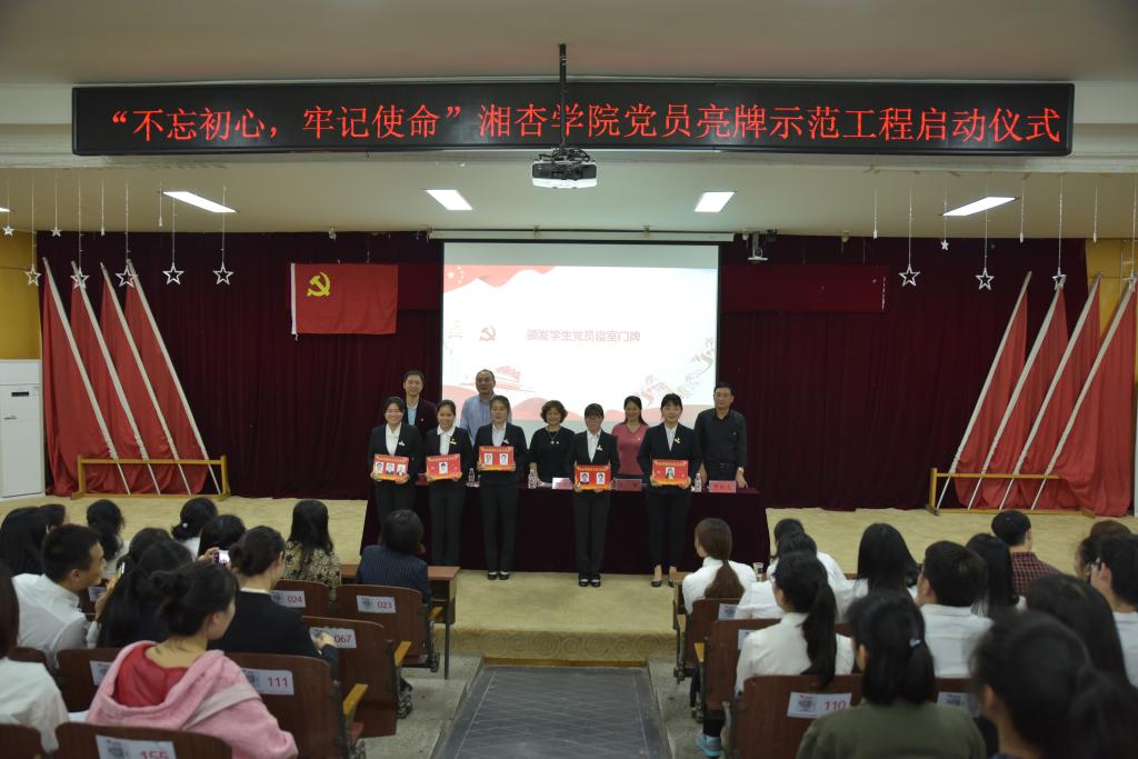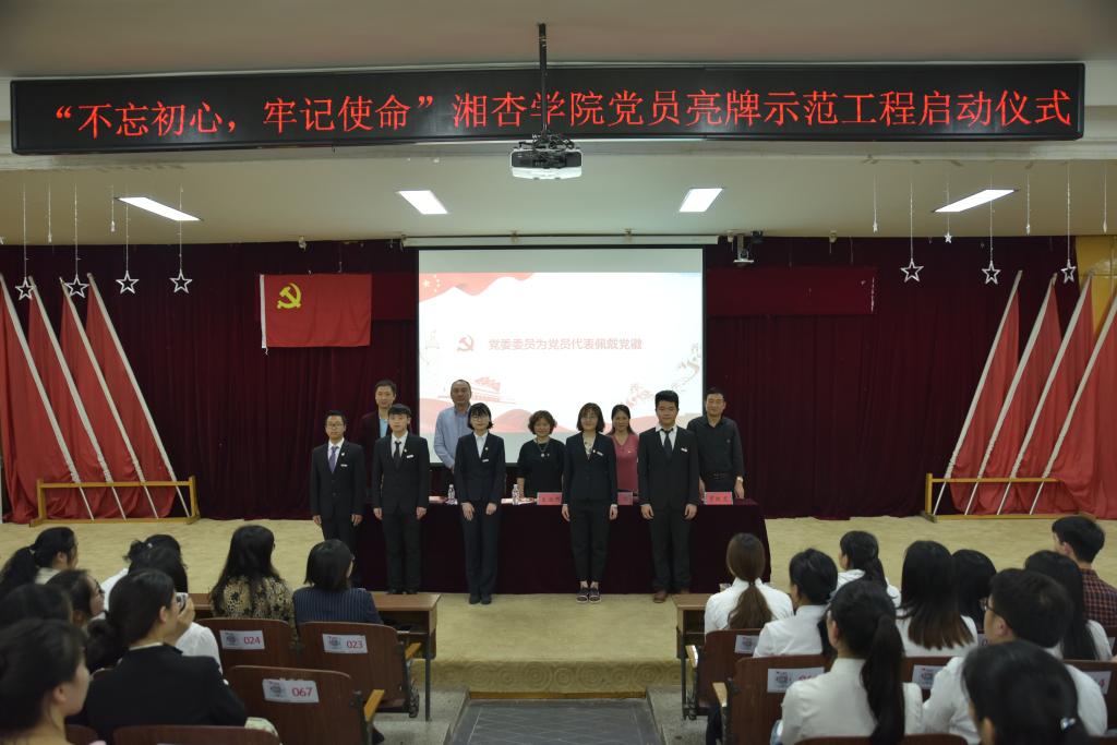 为贯彻落实党的十九大精神,进一步增强党组织的向心力和凝聚力,充分发挥党员的先锋模范作用,树立合格党员形象,全面促进学院校风、学风和工作作风建设。4月4日,beat365英国官方网站在东塘校区学术报告厅举行“不忘初心、牢记使命”党员亮牌示范工程启动仪式,学院全体党员同志及入党积极分子代表参加了活动。本次活动由beat365英国官方网站院长谢辉主持。