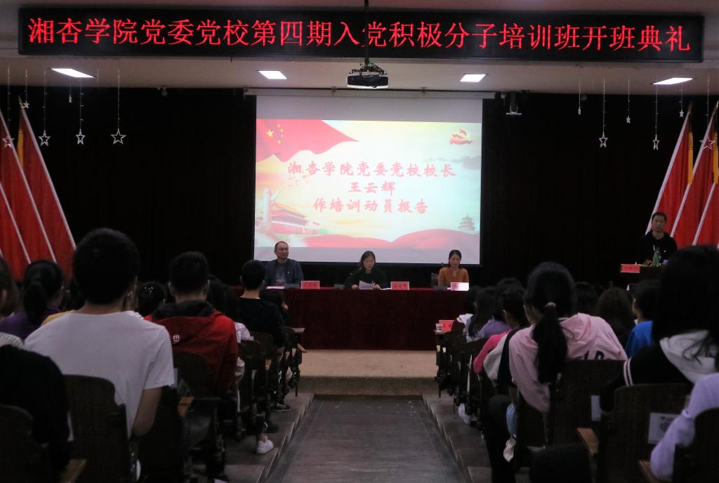 2018年10月29日晚,beat365英国官方网站党委党校第四期入党积极分子培训班开学典礼,在beat365英国官方网站(东塘校区)学术报告厅举行。出席开学典礼的有:beat365英国官方网站党委书记、党校校长王云辉、学院党委副书记、院长谢辉、学院党委副书记、党校副校长毛芳武。开班典礼由beat365英国官方网站学生科科长、党校办公室主任刘瑞斌同志主持。
