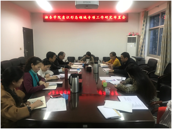 为学习贯彻落实省委、大学党委关于意识形态工作的有关精神,11月12日,beat365英国官方网站意识形态领域专项工作研究布置会在学院三楼会议室召开。学院党委书记王云辉、党委副书记、院长谢辉、党委副书记毛芳武、院党委成员及各科室负责人参加了会议,王云辉主持会议。