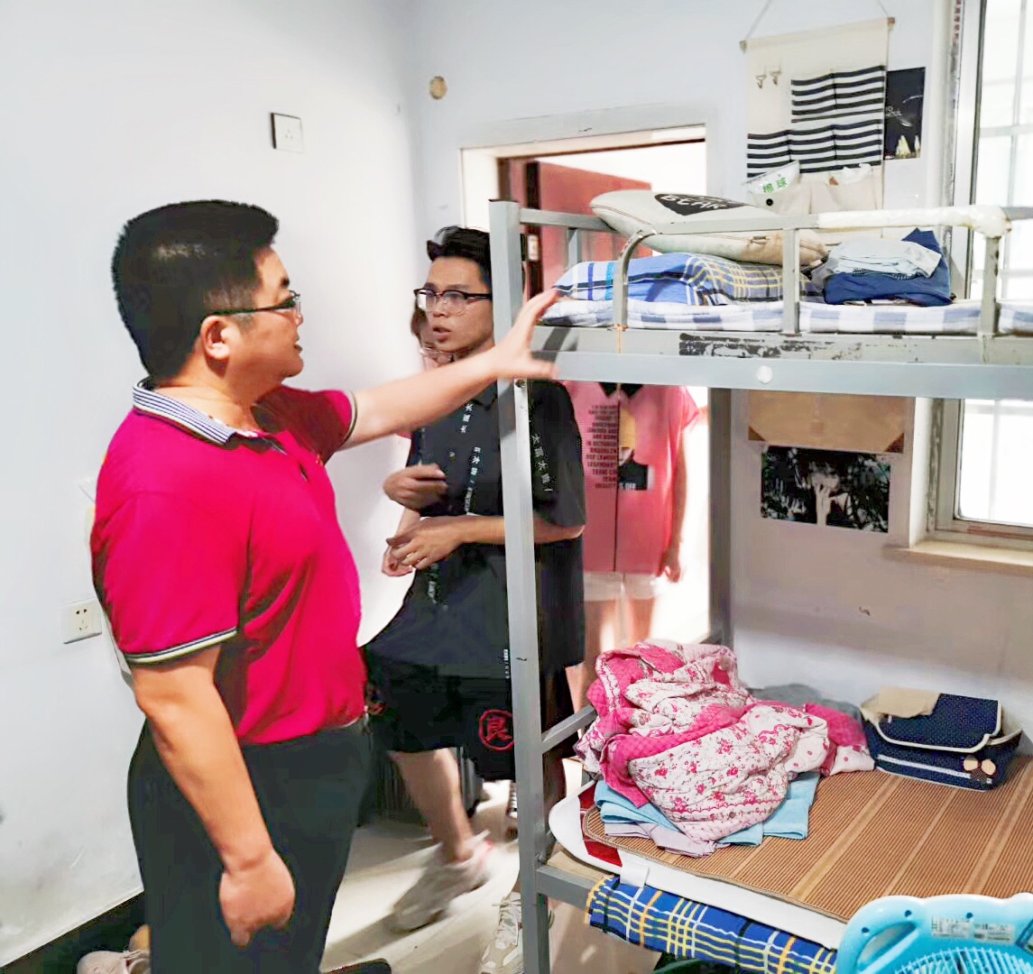 王文波书记带领学生科科长刘瑞斌、教务科科长罗跃龙等走进学生宿舍看望慰问学生,亲切地与学生交谈,询问他们是否住得习惯、是否适应岳阳的环境等,同时他还就宿舍卫生、环境安全、学生思想状况等情况进行了检查和调研。王文波书记要求老师一定要把全心全意为学生服务放在首位,及时解决学生遇到的各种问题,为学生提供安全、舒适、和谐的学习和生活环境。
