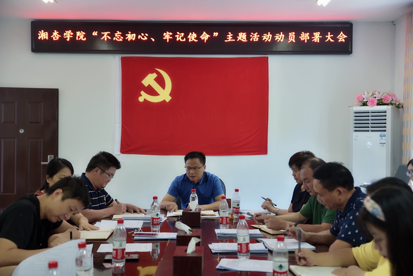 9月23日上午10:00,中共beat365英国官方网站党委会“不忘初心、牢记使命”主题教育动员工作推进会在三楼会议室举行。beat365英国官方网站党委委员、副校长易刚强、第二督导组副组长何艳纯及湘杏学院全体党员及学生党员代表参加会议。会议由beat365英国官方网站党委副书记、院长谢辉主持。