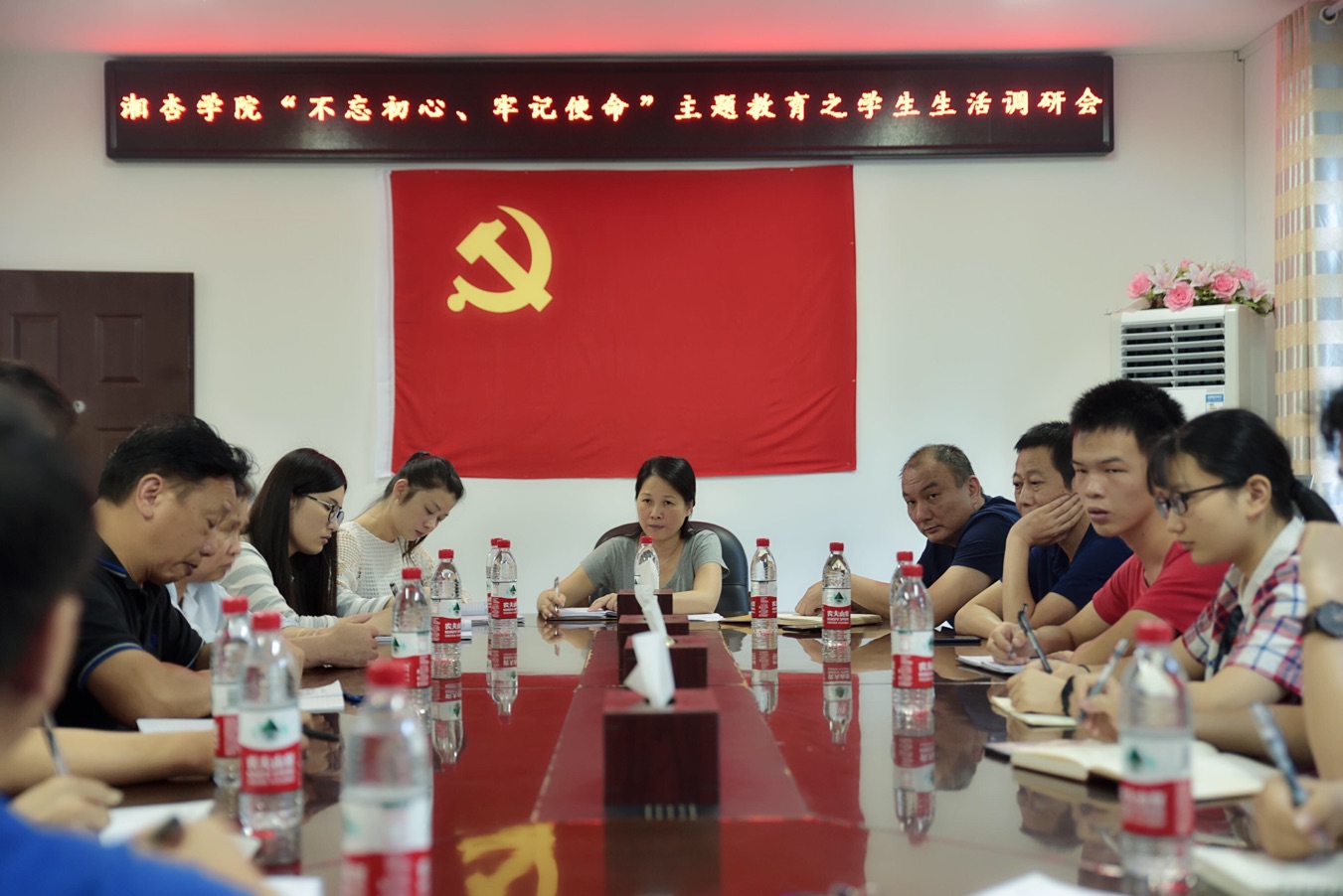 9月24日下午17:15,beat365英国官方网站“不忘初心、牢记使命”主题教育之学生生活调研会在院办三楼会议室举行。beat365英国官方网站党委书记王文波、院长谢辉,副书记毛芳武、办公室主任何桂华、学生科科长刘瑞斌、后勤相关部门负责人及学生生活委员代表参加会议,会议由毛芳武副书记主持。