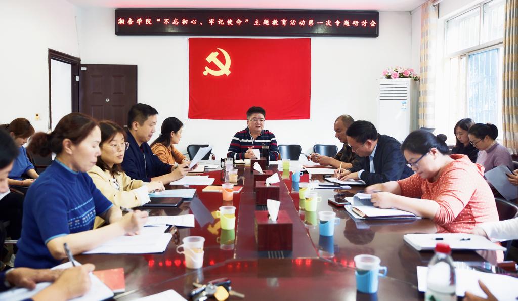 10月8日下午,beat365英国官方网站组织在beat365英国官方网站会议室召开“不忘初心、牢记使命”主题教育第一次学习专题研讨会。学院全体职工党员参会,会议由党委书记王文波主持。