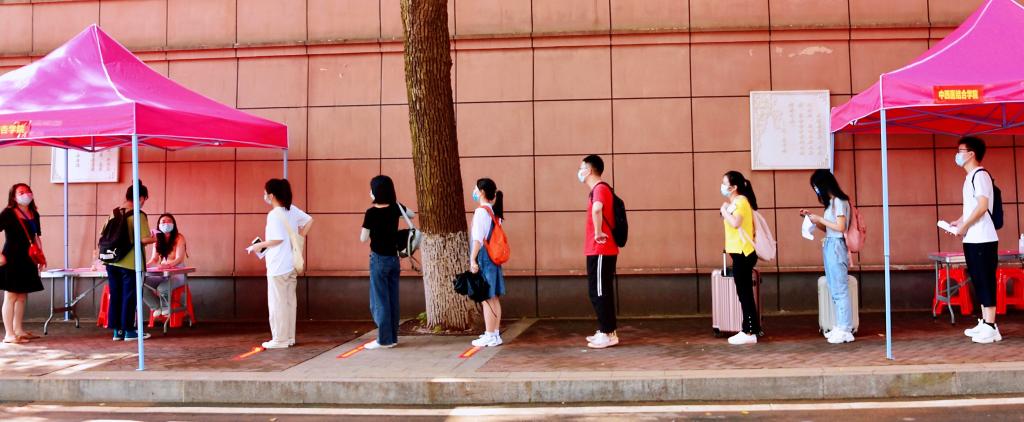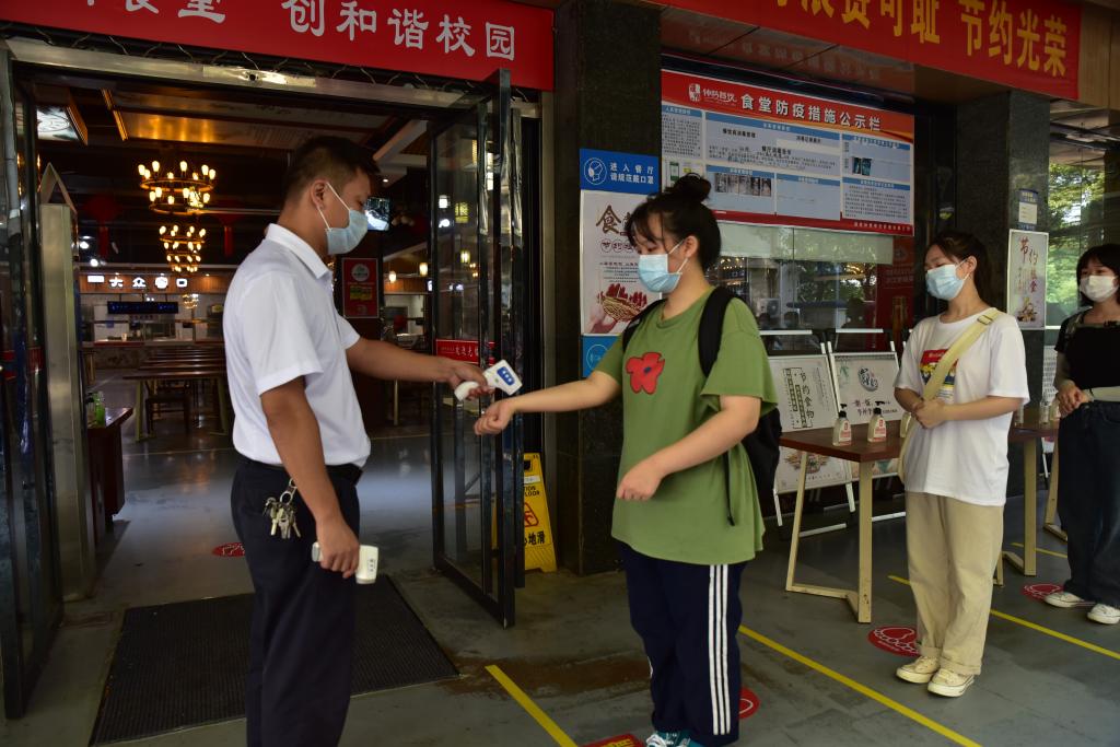 在入校演练环节,一交14天个人健康信息监测表,二查健康码、行程码、“48小时核酸检测”报告,三测体温,四消杀,五登记核实身份,六转移隔离,实现了六步程序严控“入口关”。在学生进宿舍演练环节,宿舍管理员再次查验学生体温、入住资质,有效预防新冠肺炎疫情的传播。在学生就餐演练和上课演练环节,严格实行进门测温消毒,排队一米间隔,就坐一人一桌防疫要求。此外对正常入校后发生的体温过高等异常情况,此次演练进行了医护应急演练,制定了及时报告、临时隔离、科学复测、专人消杀等多级联动的应急处置预案。