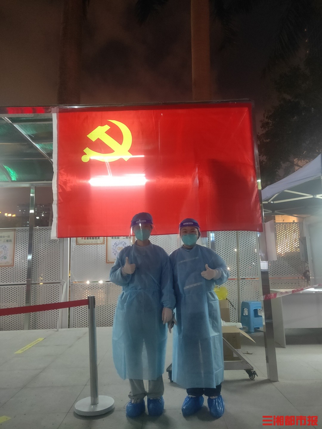 (刘智雅与黎晓婷在疫情核酸采集点)
