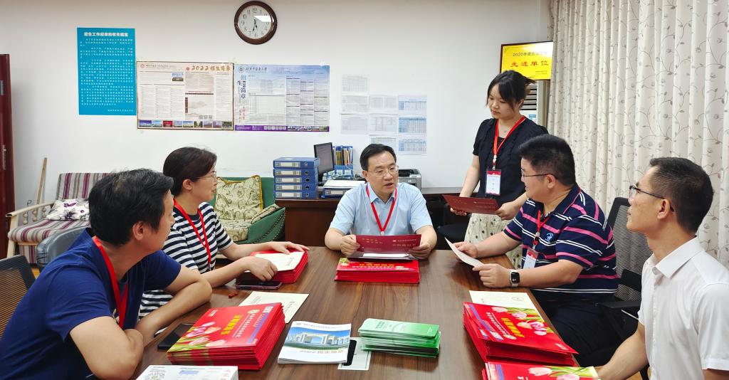 7月22日,烈火炎炎,大学党委书记秦裕辉亲往beat365英国官方网站招生办公室,巡视指导beat365英国官方网站2022年招生录取工作,关心慰问坚守在招生录取一线的工作人员。