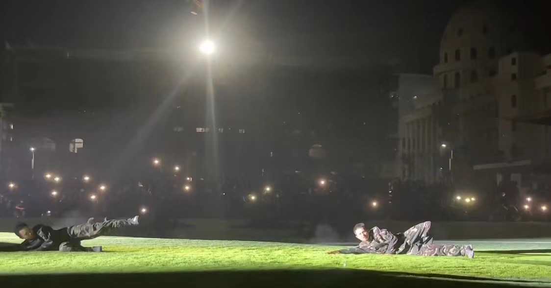 值得一提的是,本次音乐会的主持人是学院党委副书记、学工部部长刘瑞斌,他热情洋溢、幽默风趣的主持风格充分调动了全场气氛,同学们反应热烈,掌声雷动。晚会中,教官代表为大家带来的擒敌拳阳刚大气、气势磅礴,将气氛推向了高潮。