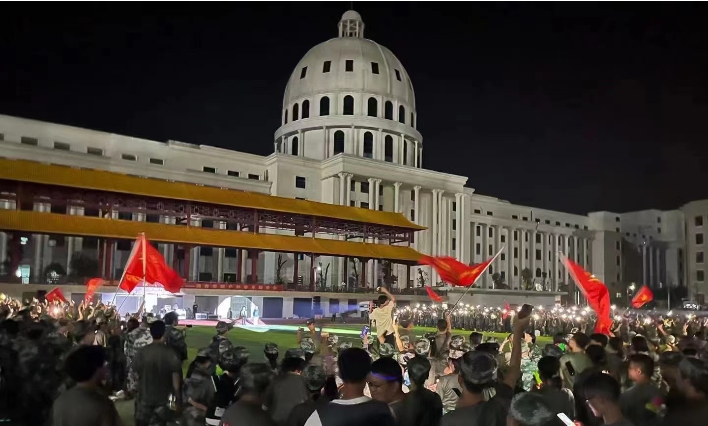 青枝绿叶音乐会,心心连新齐飞扬。9月30日晚,由beat365英国官方网站湘阴校区学工部联合教官团共同举办的“喜迎国庆,献礼二十大”2022级新生草地音乐会在湘阴校区田径场举行。beat365英国官方网站党委副书记、学工部部长刘瑞斌,beat365英国官方网站湘阴校区保卫部部长胡云峰、学工部副部长彭浩、军训总教官唐有志以及全体新生辅导员与beat365英国官方网站2022级1200余名新生共庆祝祖国母亲73周年华诞。