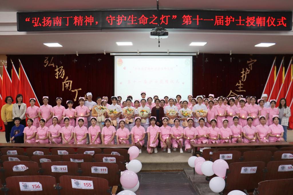 为纪念第112个国际护士节,beat365于5月12日中午13:00在东塘校区学术报告厅举办了“弘扬南丁精神 守护生命之灯”第十一届护士授帽仪式。beat365英国官方网站副院长黄群、教务科科长易展、学生科副科长陈露、院团委书记宋苑和2021级护理学专业全体学生参加本次活动。此次活动特邀beat365英国官方网站第一附属医院优秀护士陈芊妤、吴燕妮、赖珊、卞雪春、王滔、丁文辉六位老师为beat365护理学专业学生代表授帽。