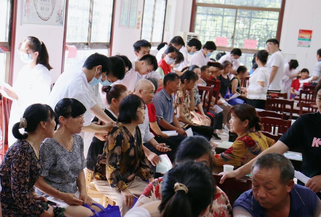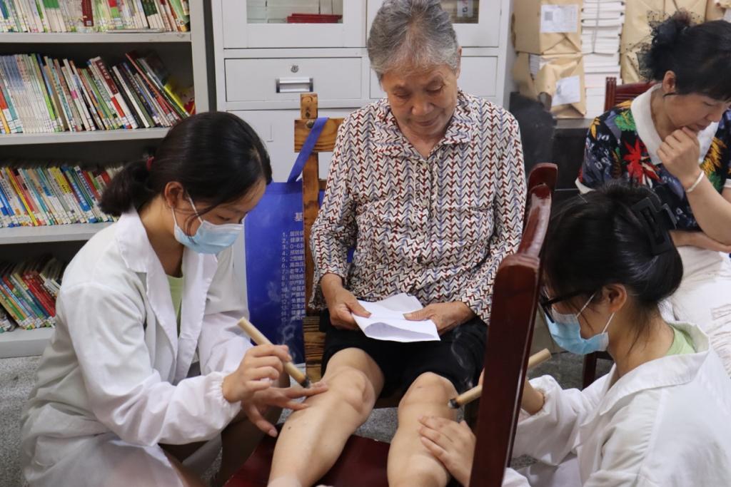 “奶奶,我现在给您耳朵上贴了耳穴贴,您在睡觉前可以轻轻按揉30分钟,这样会改善您的失眠症状。”义诊队成员有条不紊的为村民们量血压、测血糖,进行艾灸、三伏贴、耳穴压豆、推拿等中医适宜技术,并认真宣传如何通过改善饮食、生活习惯来提高个人身体素质,提醒老人要清淡饮食,多吃新鲜蔬菜水果,平时可以练习八段锦和太极拳,锻炼身体以提升阳气。