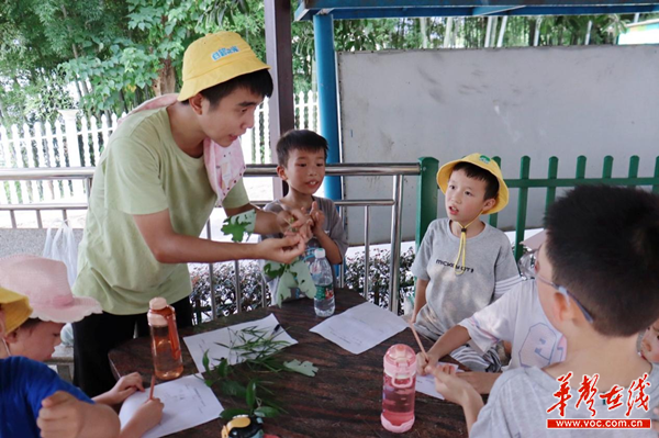 此次中医药文化夏令营在白箬铺镇光明小学开展,为期8天。据光明小学刘校长介绍,该小学以美育教育为特色,注重培养孩子们发现美、创造美、散播美、感知美的能力,他强调,蓝天白云之下皆是课堂。支教团成员深受启发,结合中草药辨识课程,开创了草叶拓染活动,用“草叶趣事”印出夏天的美,巩固中草药在孩子眼中的“形”,在孩子们心中播下中医药的种子。