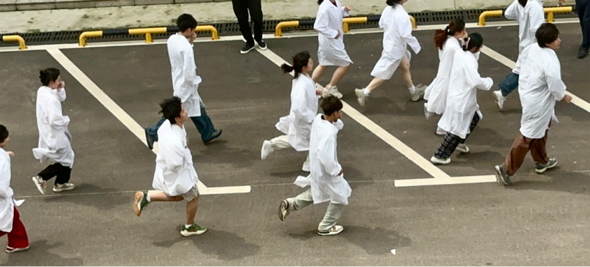随着演练的开始,岐黄楼实验室内迅速弥漫起了黄色的烟雾。在疏散小组的引导下,数百名学生纷纷捂住口鼻,弯腰低头,从实验室消防通道有序地逃离。与此同时,保安和消防队员迅速抵达“火灾”现场,控制火情,确保了同学们的人身安全,极大降低了学校财产损失。在整个演练过程中,学生们积极参与,无人受伤。