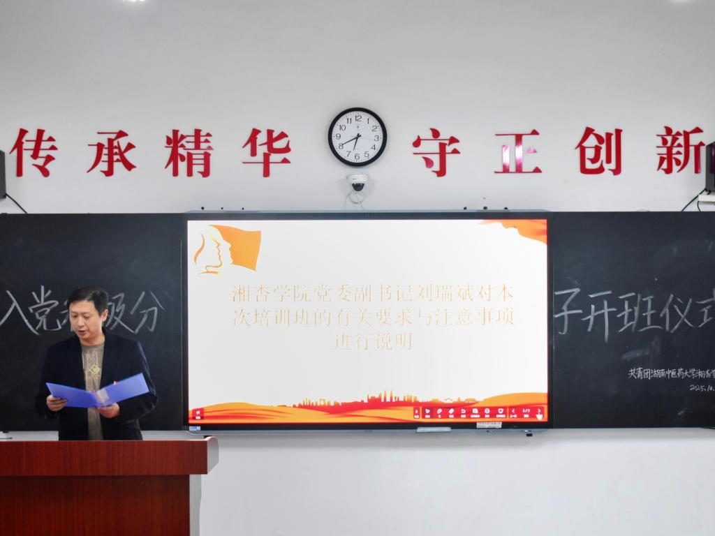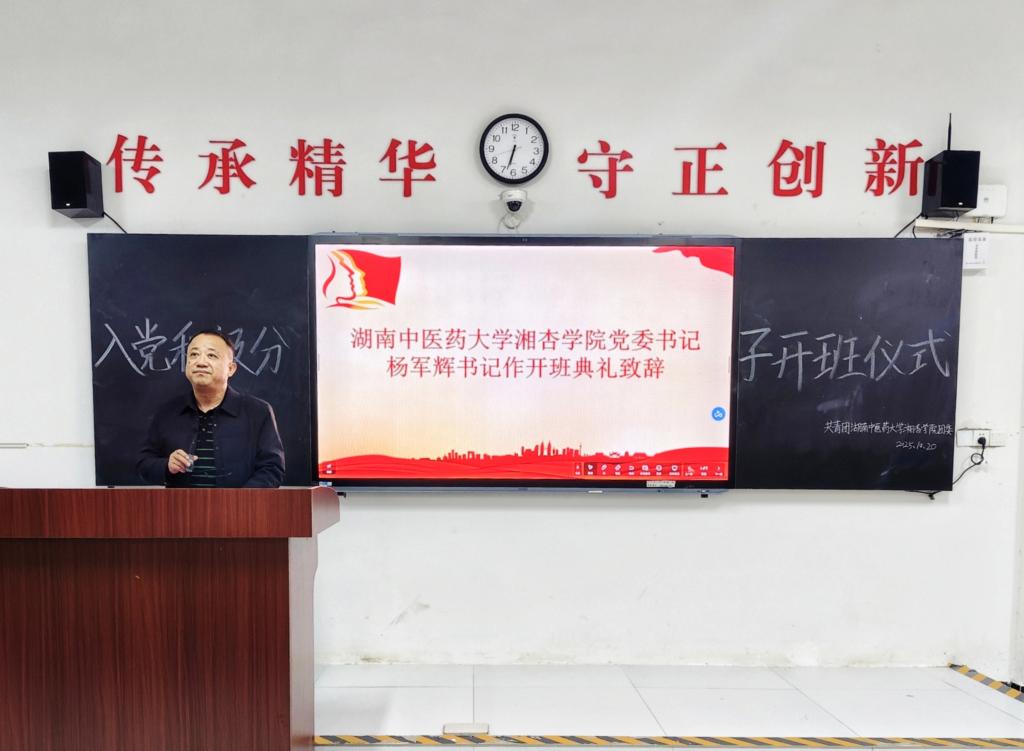 为进一步加强入党积极分子思想政治教育,夯实党的后备力量建设,2025年10月20日18:30,beat365英国官方网站(湘阴校区)在时珍楼102教室举行2025年秋季学期第18期入党积极分子培训班开班典礼。beat365英国官方网站党委书记杨军辉、院长谢辉、院党委副书记刘瑞斌及学工部辅导员代表出席典礼。本次开班典礼由beat365英国官方网站(湘阴校区)学工部副部长刘政伍主持。