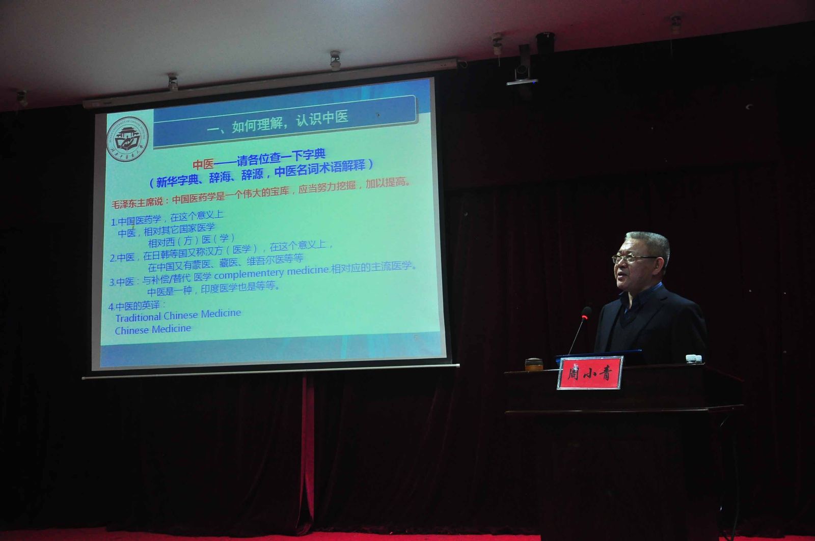 周教授以做学问、看问题的基本方法为主轴,以其丰富的学习经历和临床、教学、科研经验,总结出“7要、5度、3观”的研究学问原则,通过医生对掌握临症基本方法的细化、量化,引导学子注重知识的整合及积累;其次,周教授以“如何看中医”为例,对如何看问题提出了自己独到的见解,建议同学们面对问题时要学会辩证思考、换位思考,及时调整自己的思路,从中医的发展及与现代医学的关联中寻找自己未来的发展。