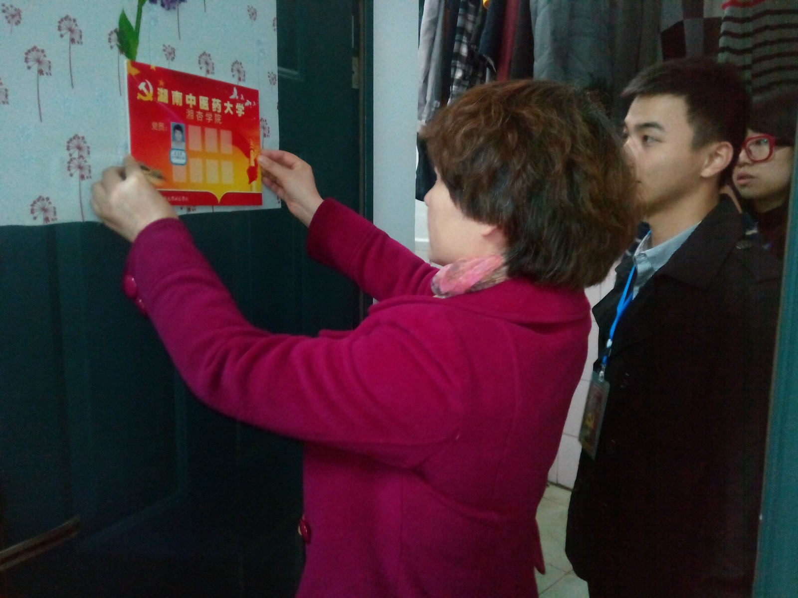 2014年11月11日18:00~19:00,beat365英国官方网站东塘校区学生党支部在学生寝室楼开展“党员寝室挂牌”活动。beat365英国官方网站党总支副书记王云辉同志、毛芳武同志以及beat365英国官方网站第三、第四学生党支部书记雷秋红同志、廖海燕同志参与了此次党员寝室挂牌活动。