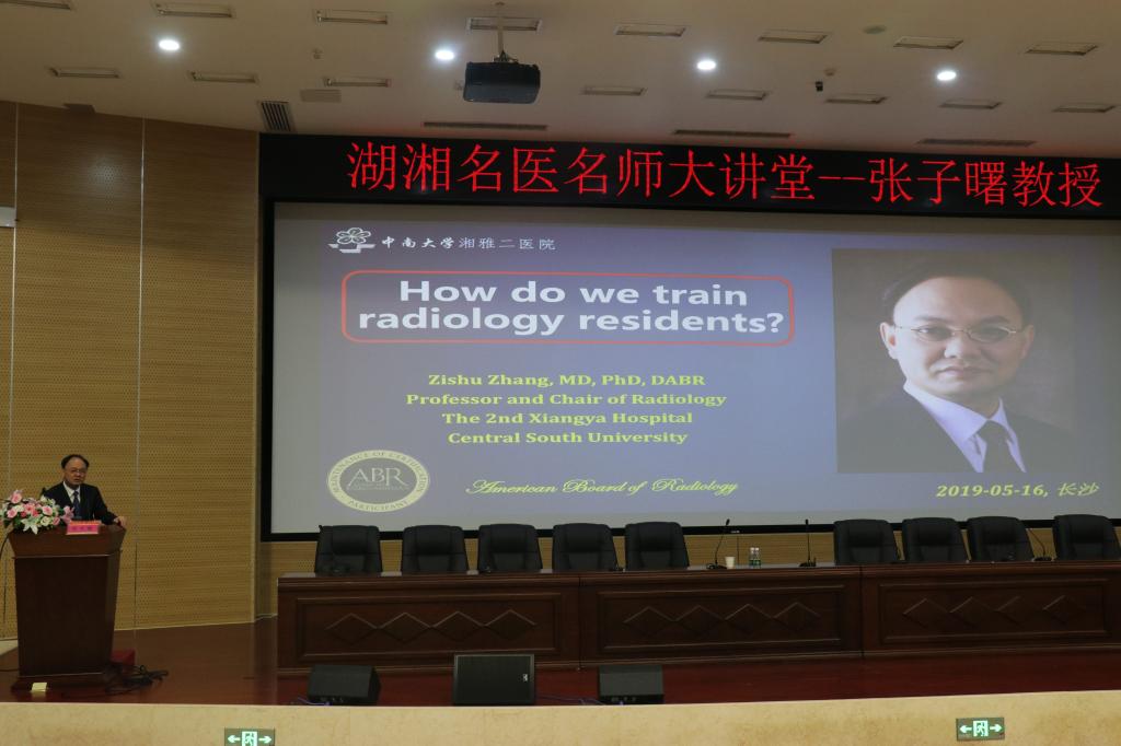51619:00,在含浦校区第三教学楼教学术报告厅,我校有幸邀请到中南大学湘雅二医院放射科主任,博士生导师张子曙教授作“美国和中国的医生培养体系”专题学术讲座,本次讲座由大学教务处和beat365英国官方网站联合主办。莅临此次讲座的嘉宾有中医附一放射科主任李平、教务处副处长田雪飞、beat365英国官方网站院长谢辉、教务科科长罗跃龙等。beat365英国官方网站医学影像技术专业、医学院医学影像学和临床医学等专业500多位学生聆听了讲座,会场座无虚席。