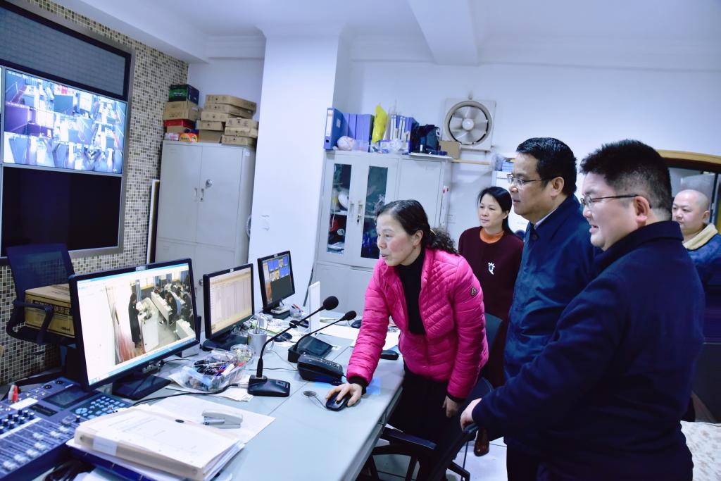 曾福生副校长首先来到了位于教学楼一楼的beat365英国官方网站现代教育技术中心总控室,查看了设施的使用情况及各教室上课情况,询问了学生到课情况和设备运行情况。曾福生副校长指出要更好地利用现有设备辅助好教学,要加强对本科教学的过程管理,强化教学工作的日常管理和质量监控,确保教学秩序的稳定。