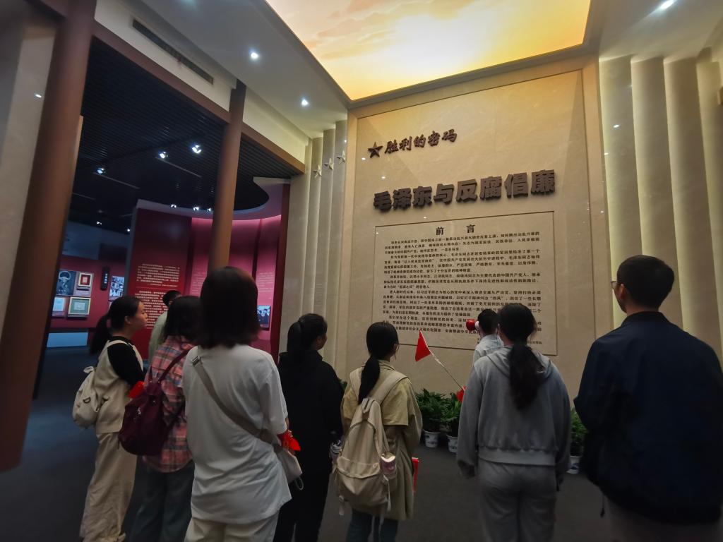 活动伊始,全体人员来到毛泽东铜像广场整齐列队,表达深切的敬仰缅怀之情。随后,全体党员在学生科副科长陈露的带领下参观了毛泽东同志纪念馆,同学们通过观看详实的文献资料和珍贵历史文物,身临其境的感悟红色文化,激发同学们的爱国热情和实现中华民族伟大复兴的责任感和使命感。最后,全体成员走进毛泽东同志故居实地参观学习,重温以毛泽东同志为代表的老一辈共产党人带领全国各族人民浴血奋战抗击外敌、建设新中国的光辉岁月,感受“为有牺牲多壮志,敢教日月换新天”的韶山精神。