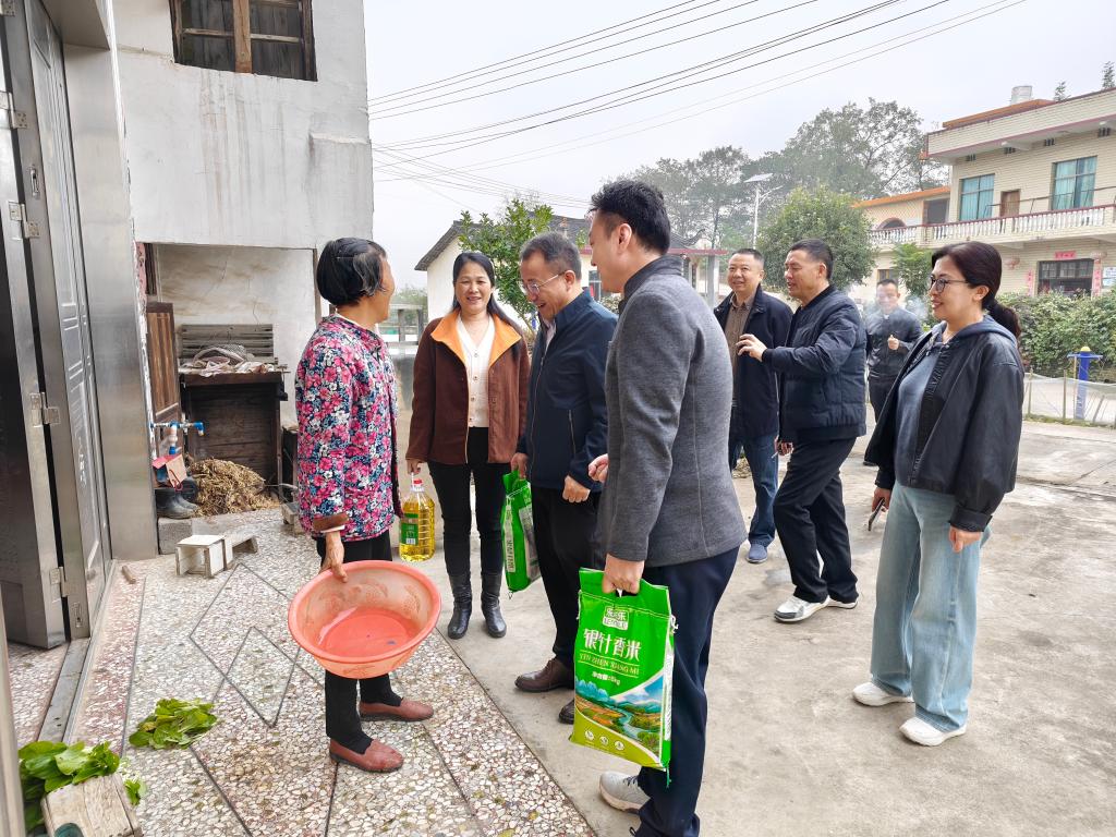 11月7日上午,beat365英国官方网站党委书记杨军辉、党委副书记、院长谢辉、副院长贺林、黄群等一行5人赴武冈市邓元泰镇天心桥村开展院地携手促振兴同心共筑“天心桥”帮扶慰问活动。