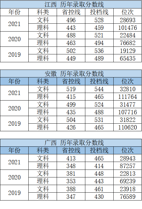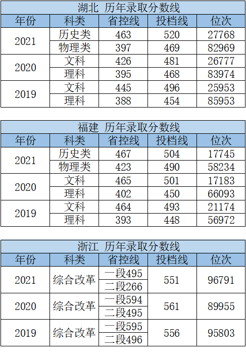 小编整理了近3年面向各省份的录取分数线供全国考生及家长参考