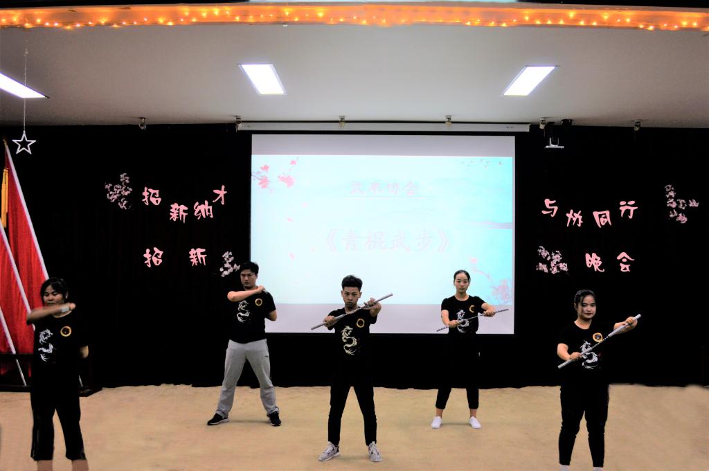 此次招新晚会,各协会皆以丰富多彩的形式彰显自身特色。吉他协会与音乐协会合奏的一首《小情歌》缓缓拉开了此次晚会的帷幕。电影协会与动漫协会共同表演情景剧《我与鸣人》,讲述一个学渣变学霸的励志故事,用贴近生活的情节引发在场同学的思考。随后,在激动人心的音乐中,武术协会霸气登场,用双节棍、太极等展现出中国武术刚柔并济的独特魅力,将此次活动一再推向高潮。由养生协会、书法协会及乒乓协会共同表演的压轴节目《歌颂中医》展现着人文关怀,传扬着中国传统文化,继承着中国文明国粹。活动最后,各协会向在坐的同学发出诚挚的邀请。至此,此次活动圆满结束。