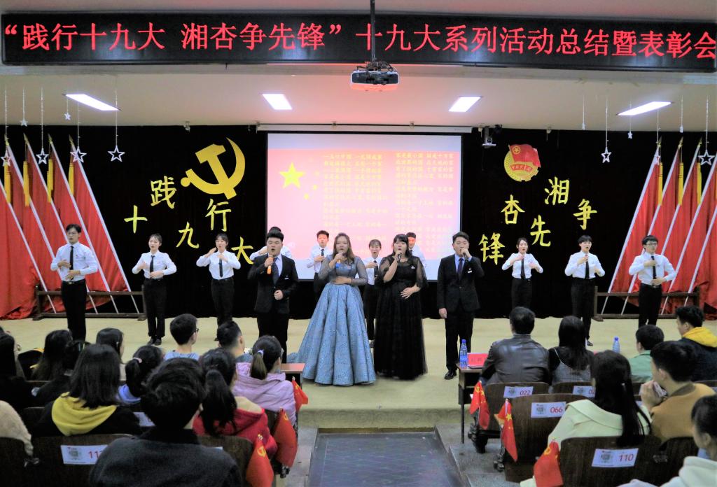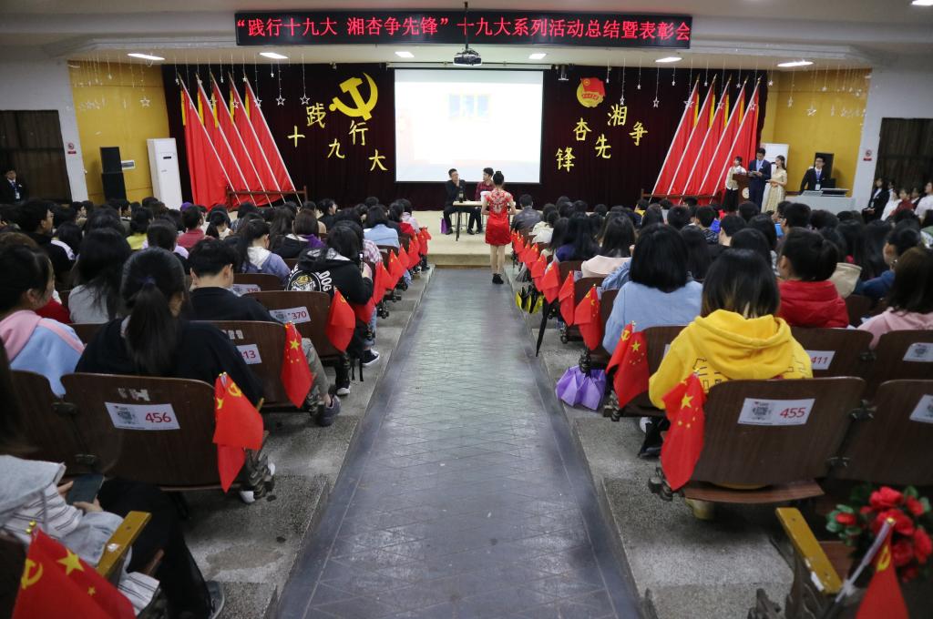 本次十九大系列活动总结暨表彰大会,表彰了一批优秀学子,鼓舞着湘杏学子努力奋斗,并表达了湘杏学子坚定不移地为推进中国特色社会主义伟大事业前进的决心。