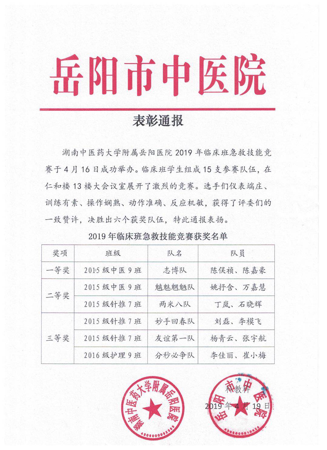 用双手传递爱心,用技能守护生命。为提升医学生急救技能和应急处理能力,2019年4月16日,2019年度临床班急救技能竞赛大赛在beat365英国官方网站附属岳阳医院圆满举行。此次竞赛邀请了实力派的强大评委阵容,均是曾参加湖南急救技能竞赛荣获冠军的选手和指导老师们。