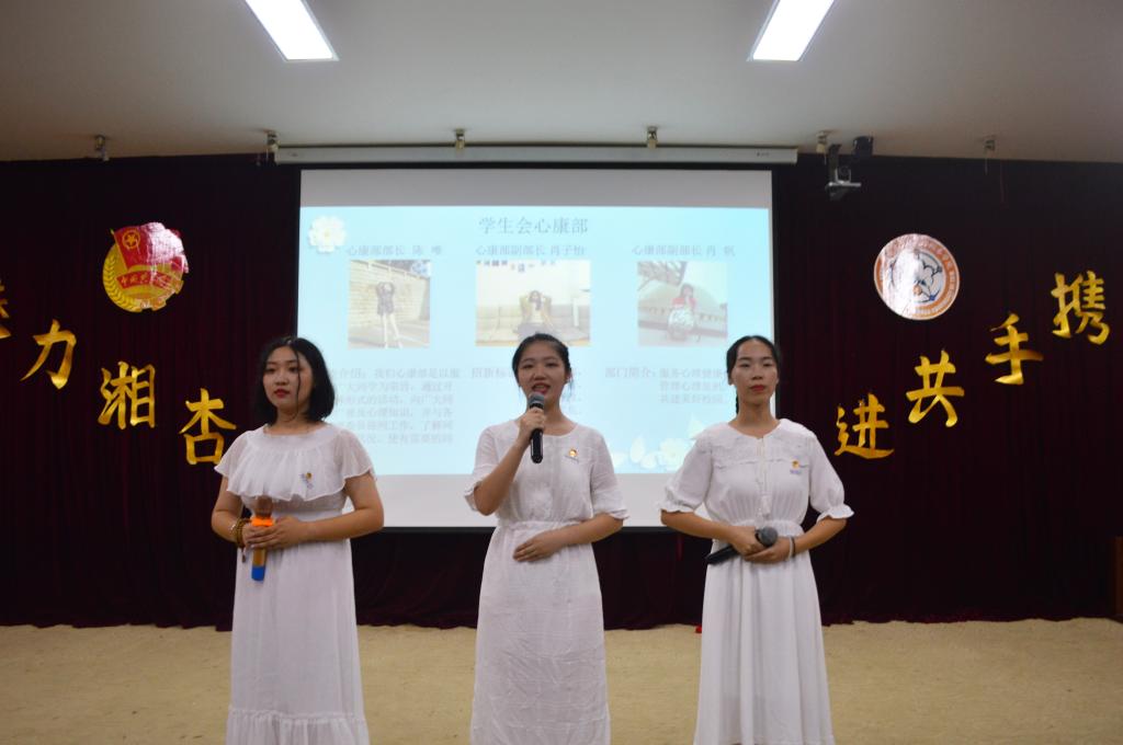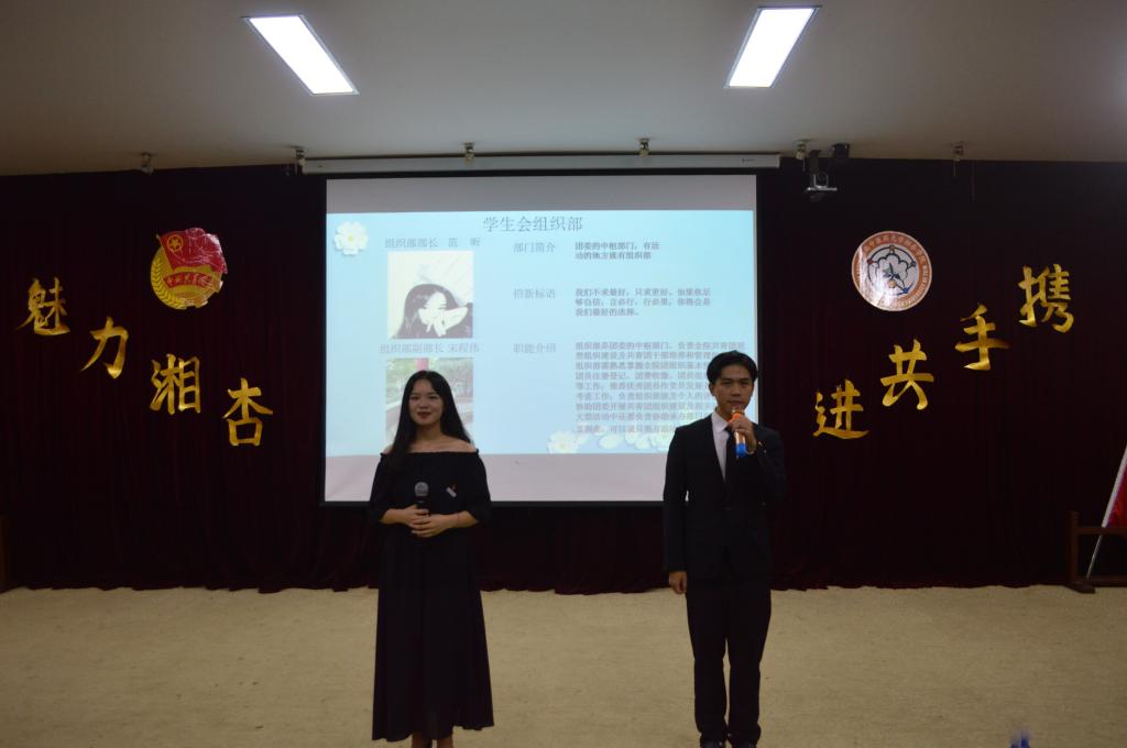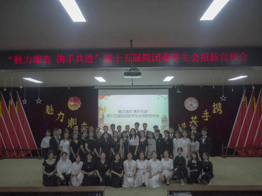 为保证我院团委学生会新鲜血液的注入,有足够高素质的后备力量,进一步有效开展团学工作。由beat365英国官方网站第十五届团委学生会办公室承办的"魅力湘杏 携手共进"招新宣传会于2019年9月6日晚19点在东塘校区学术报告厅举行。此次活动由院团委书记李佩老师主持,2019级全体新生参加此次活动。