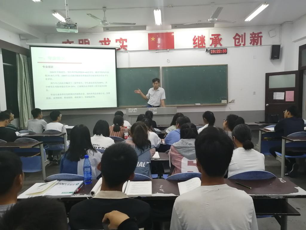 2019年9月18日晚,我校2019级制药工程专业思想教育在含浦校区1-503教室举行。副教授杨岩涛博士作为主讲人参加了此次活动。
