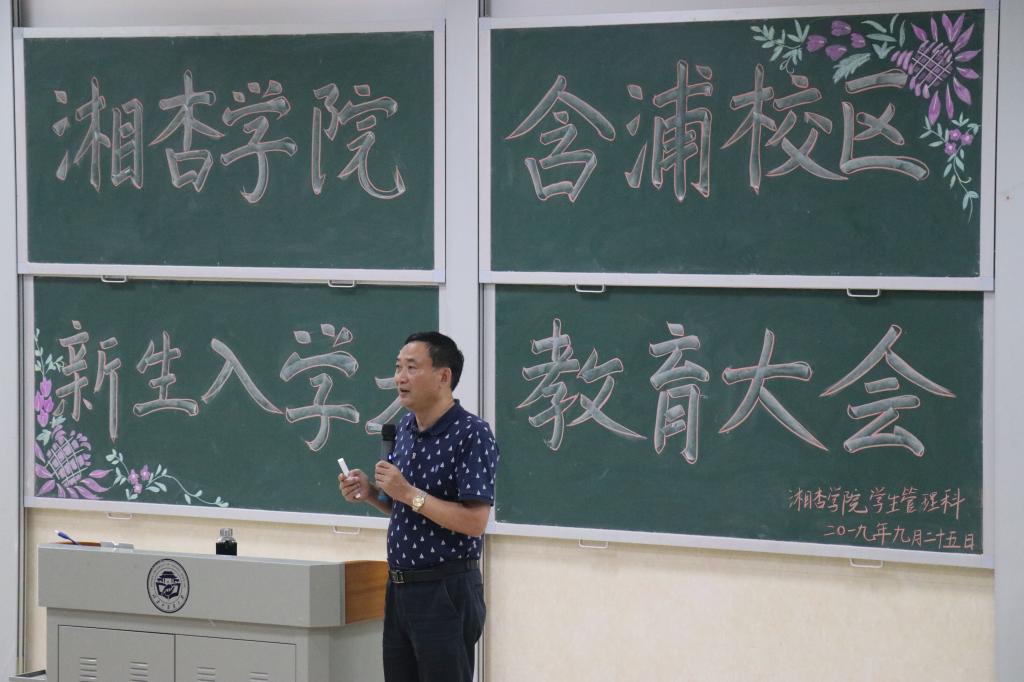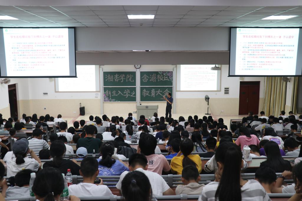 2019年9月25日晚上19:00,beat365英国官方网站(含浦校区)于3216教室组织召开2019级新生入学教育大会,出席本次大会的有教务科科长罗跃龙老师,第二学生党支部书记、资助专干梁琼老师,学生科邹旭老师以及2019级新生。