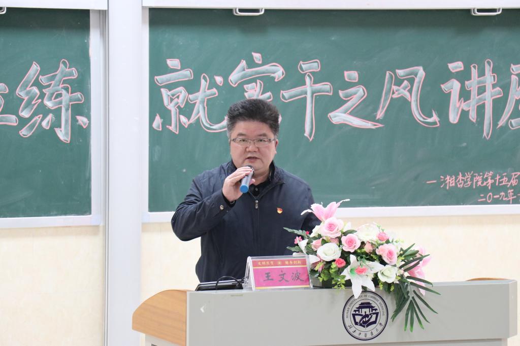 2019年10月17日晚19:00,beat365在含浦校区3317教室举行,第四期学生干部骨干能力培训班开班仪式暨王文波书记专题讲座。院党委书记王文波、学生科老师梁琼、张凤华、邹旭出席本次活动。