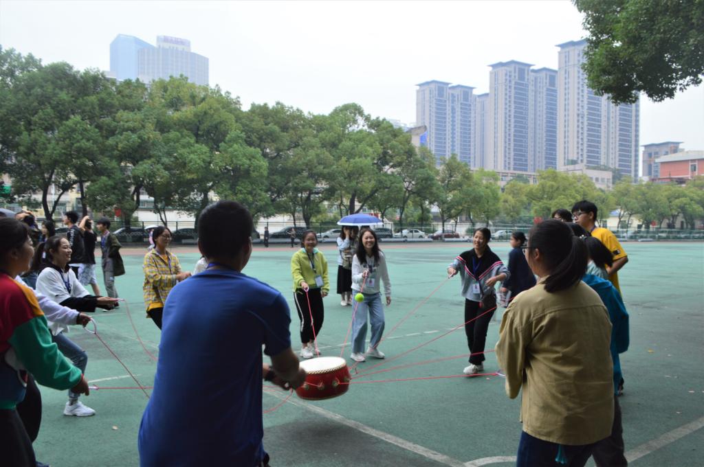 本次活动分为9个小组,各组组员表现优异,飘来阵雨也坚持完成活动中的每个项目,体现出学生干部们坚持不懈的宝贵精神。颠球击鼓这一项目,使学生干部充分挖掘了自身潜力,有利于其挑战自我极限;在两人三足的项目中,学生干部充分发挥了团队合作的精神;爱的抱抱,使得学生们学会了更好的交流与配合,促进了彼此的了解;而在跳长绳时,学生干部齐心协力,配合默契,看得场外观众惊叹不已。在活动中,学生干部共同分享成功的喜悦,也共同承担失败的责任,并且认识到了在今后的工作中要松弛有度,积极向上级反馈信息,打破思维定势,有责任有担当,才能发挥出自己最大的才能。