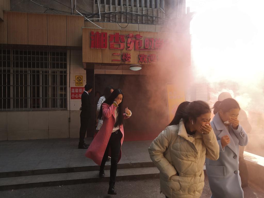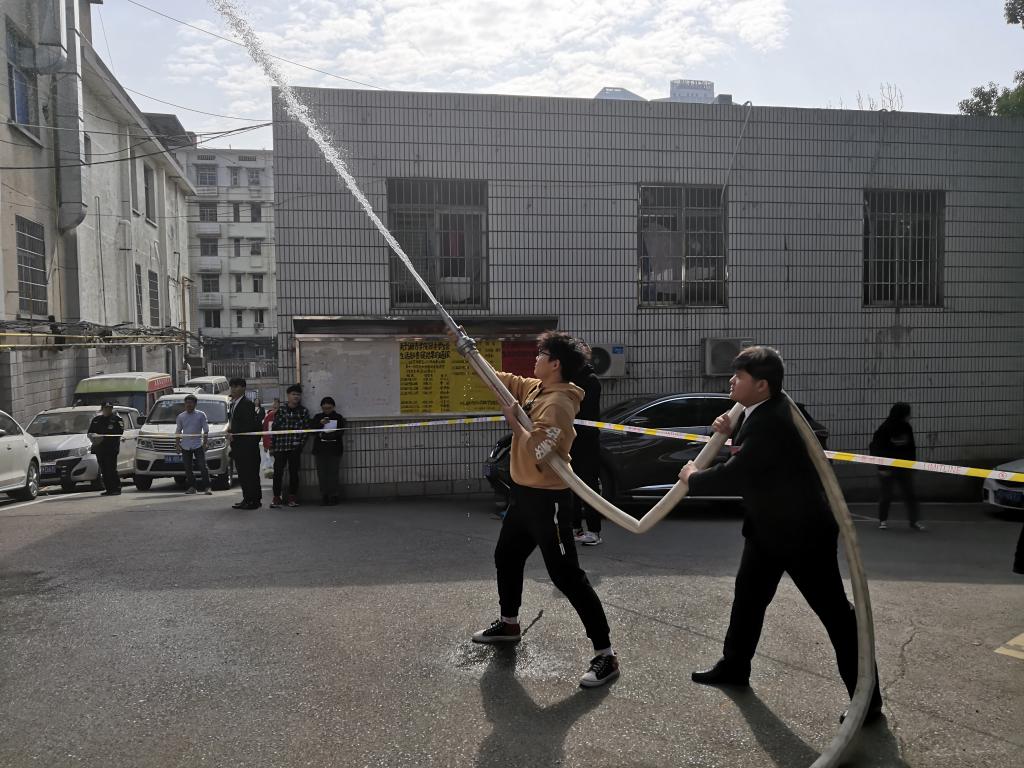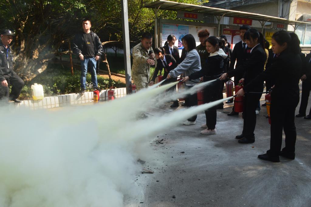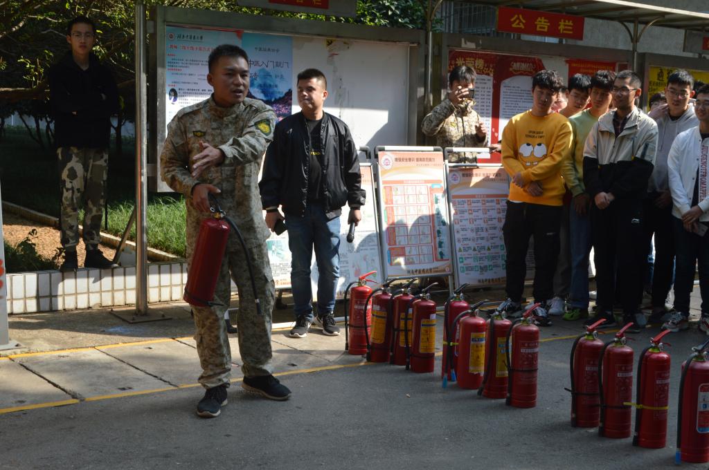 毛芳武副书记下达消防演习开始指令,各小组迅速动员。随着警报声的拉响和烟雾弹的投放,疏散演练拉开帷幕。疏散组成员镇定地组织同学们有秩序地撤离至安全地带,医疗组专注于疏散过程中的突发紧急情况,通讯组始终保持疏散过程中联络通畅。在各部门的共同协作下,疏散演练始终有条不紊地进行着。此外,同学们的力量也不可小觑,安全疏散知识准确地被运用到演习中,“湿巾捂鼻,稳步前行”,既快又稳地顺利完成了此次疏散演习。演习后,保卫科有关老师为同学们讲解消防器械的正确使用方法,一摇二扯三压四喷,同学们也纷纷拿起灭火器来实际操作使用。