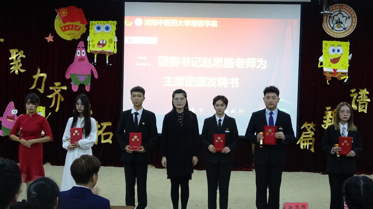 会议伊始,由团委书记赵思路老师致辞,她对新加入的学生会干事志愿者表示了热烈的欢迎,并对学生会全体成员提出了注重品德、诚实守信、心怀感恩,强化责任四点要求。随后,赵思路老师为主席团成员颁发聘书,主席团成员依次给副部以上干部颁发聘书。紧接着是展现各部门独具特色风采时刻,外向热情的外联部、纪律严明的生活部、气宇轩昂的纠察纪检部等,一次次将现场气氛推向高潮,展现的是团委学生会干事热情向上,团结奋进的精神风貌。最后,活动在激情洋溢的氛围中宣布圆满结束。