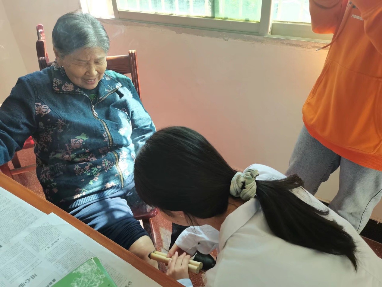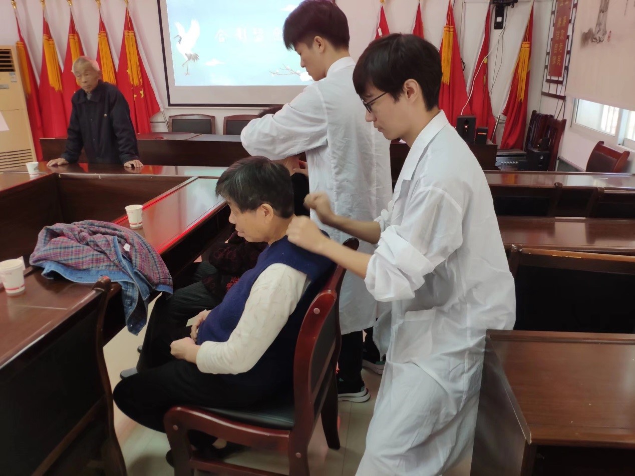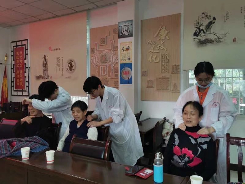 恰逢重阳节的到来,阳光明媚、清风徐来,大家的心情也随着美好的天气变得格外明朗,活动中也不知疲倦。本次“微尘”义诊队将为社区近20位居民进行了义诊服务,借此向广大群众展示中医文化的魅力和传播博大精深的中医药文化。在义诊活动中,同学们积极展示自身在校所学的技艺,运用中医推拿和艾灸等养生保健方法,帮助居民们疏通经络调和气血,让居民们切实地体验了中医健康养生服务。居民们纷纷表示中医推拿和艾灸不仅缓解了腰痛、脚痛,筋络也更加舒畅了,体会到了中医文化的神奇之处。不仅如此,义诊队还协同社区工作人员进行了重阳节传承孝风活动,义诊队成员教授中医养生方法给社区年轻人,以方便他们给家里的长辈做中医推拿和艾灸,促进良性互动的形成,传递“孝”文化。最后,此次活动在大塘社区居民对义诊队表示真挚的感谢中圆满结束。