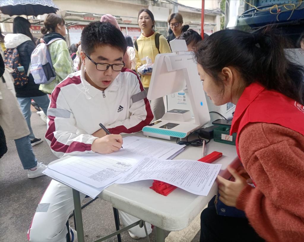 移动献血站一经建立,便得到了全院师生的积极响应。4月13日上午9:30,已有众多同学在献血服务车站前等候。各位青年志愿者在现场宣传讲解国家的无偿献血政策,并耐心解答献血者提出的问题。在工作人员的指导下,献血者们井然有序地按献血流程进行登记、体检、采血和领证,积极配合志愿者以及工作人员的工作。每位工作人员和青年志愿者们尽职尽责、热情认真。不论是献血者还是工作人员,他们都在用自己的实际行动传递着爱与感动。在为期3天的献血活动中,共有96人符合要求且志愿献血,他们不仅是在用自己的实际行动诠释奉献的价值,同时也是在用自己的博大情怀倡导助人为乐的社会风尚。