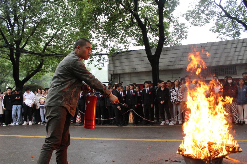 随着王文波书记下达消防演习开始的指令,各演习小组成员迅速进入紧急状态:指挥组时刻关注疏散情况,组织同学们有秩序地撤离至安全地带;灭火组首当其冲,寻找火源,接通水栓,进行灭火;后勤保障组切断电源,启动消防备用电;医疗组全程待命,时刻关注疏散过程中的紧急情况。疏散结束后,保卫科人员在林荫道现场指导使用消防器械,同学们认真观摩学习并亲自动手操作。随后,在消防知识讲座中,同学们系统学习了消防理论知识,掌握了更多灭火工具的使用,增强了应急处理能力。