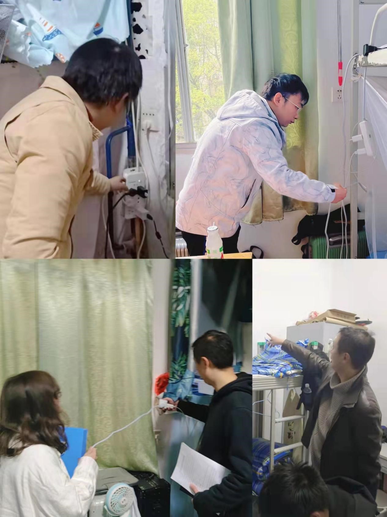 本次检查的重点是学生寝室的内务整理状况以及插线板安全使用情况。老师们来到各个寝室查看了卫生情况,并提醒同学们注意用电安全,针对电闸未关、插线板使用不当、违规使用大功率电器、周围物品摆放杂乱等影响消防安全的问题及时给予指正。此外,老师们还关心了同学们的在校生活,询问了大家在学校的学习生活情况,气氛融洽。