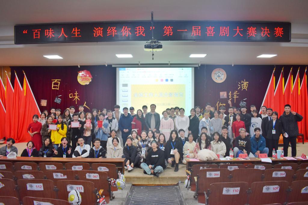为了丰富校园文化生活,激发大学生的创造力,培养新时代全面发展的新青年,beat365英国官方网站第十七届团委学生会文礼部于2021年11月30日19:00在东塘校区学术报告厅举办了“百味人生 演绎你我”校园喜剧大赛。出席本次活动的有院党委副书记刘瑞斌老师,团委书记宋苑老师,学生科王毅老师,学生科马翔老师,学生科赵思路老师,学生科乔清老师,学生科王莎莎老师,学生科左震老师以及各班学生代表。