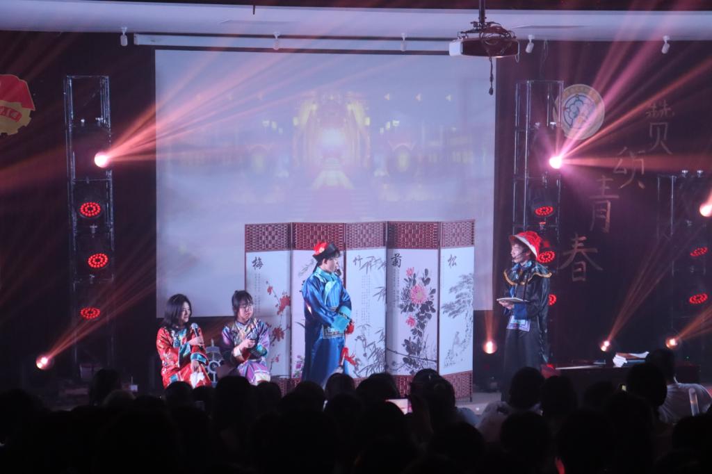 在主持人介绍到场嘉宾之后,万众瞩目的社团狂欢会正式拉开了序幕。首先是新闻网络部活力满满的杯子舞——《杯子里的稻香》,优美的旋律带动了全体师生一起合唱,调动了整场晚会的氛围;文礼部带来的音乐喜剧《再来一杯!船长》幽默有趣,甚得观众喜爱;社团部的宫廷小品《后宫温太医传》更是惹得在场观众哄堂大笑。