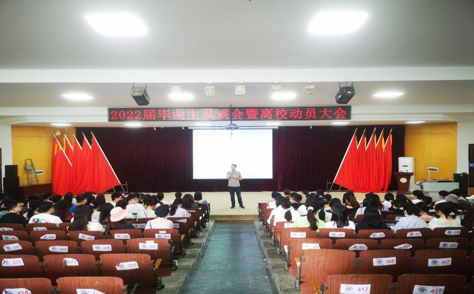 2022年5月23日、25日,beat365英国官方网站2022届毕业生恳谈会暨离校动员大会分别于东塘校区学术报告厅与含浦校区3号教学楼3217教室举行。beat365英国官方网站党委副书记刘瑞斌,学生科科长张毅韬、学生科副科长宋苑,教务科副科长陈露以及全体毕业生老师出席会议。