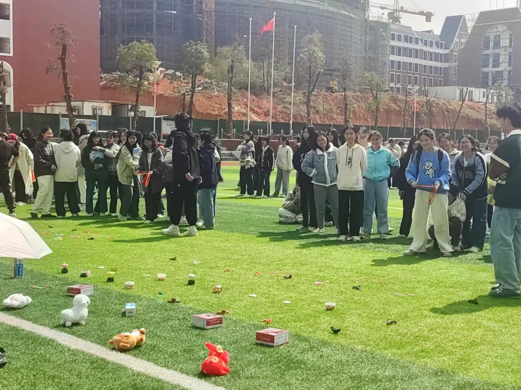 中午12:30,活动准时开始。各专业辅导员将提前准备好的500多份大小不一的精美礼品摆放在指定区域,女生们排队依次掷圈,投中的物件即作为小礼品赠送。活动氛围轻松和谐,欢声笑语此起彼伏。活动结束后,女生们带着愉悦的心情返程,真切感受到了学校对自己的重视与关怀。