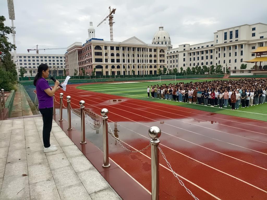 9月4日清晨,beat365英国官方网站湘阴校区2023年秋季学期第一次升旗仪式在田径场举行。全院师生参加了此次升旗仪式。仪式由党委副书记刘瑞斌主持,院长谢辉发表了重要讲话。