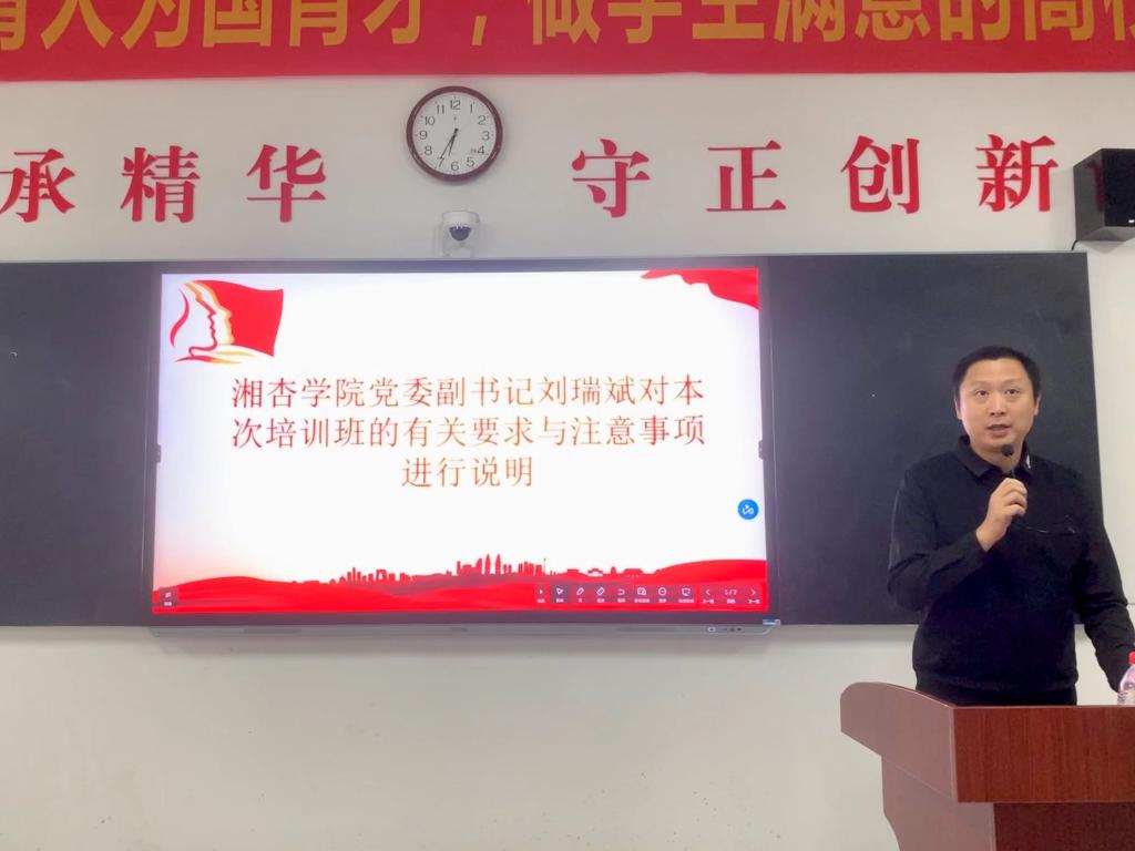 为深入学习贯彻习近平新时代中国特色社会主义思想和党的二十大精神,全面落实新时代党的教育方针,beat365英国官方网站湘阴校区于10月16日下午18:30在时珍楼101教室举行了第14期入党积极分子培训班开班典礼。参与此次活动的有:beat365英国官方网站院长谢辉、党委副书记刘瑞斌、教职工代表以及本期所有入党积极分子。