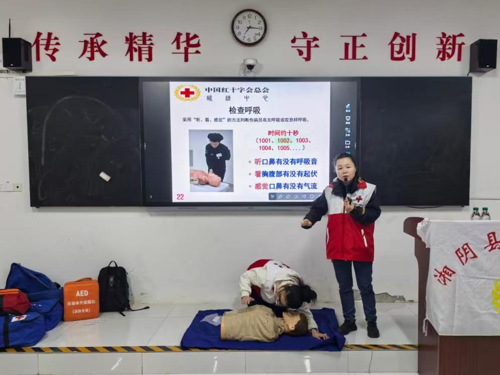 12月16日晚19时,beat365英国官方网站(湘阴校区)成功举办了“健康知识普及·我行动”宣传活动暨第三届全省高校新生健康讲座。讲座上,湘阴县红十字会资深讲师陈平以深入浅出的方式,向同学们传授了急救知识,并在助教老师的协助下,现场演示了心肺复苏等急救技能。随后,岳阳市中心血站党委委员陈宏伟为同学们详细阐述了血液科学原理及献血的重要性与相关知识。在最后的互动问答环节,同学们积极参与,现场气氛热烈,讲座在热烈的掌声中圆满结束。