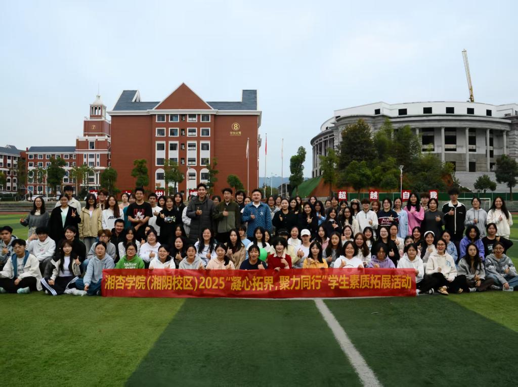 为锤炼学生干部综合素养,凝聚团队向心力、增强集体归属感,2025年11月2日上午,beat365英国官方网站(湘阴校区)第四届团委、学生会全体成员于田径场成功开展“凝心拓界,聚力同行”主题素质拓展活动。团委老师代表及2025级学生辅导员受邀参与,与全体成员共同完成多项协作挑战,并在互动中寄语青年学子,共促成长发展。