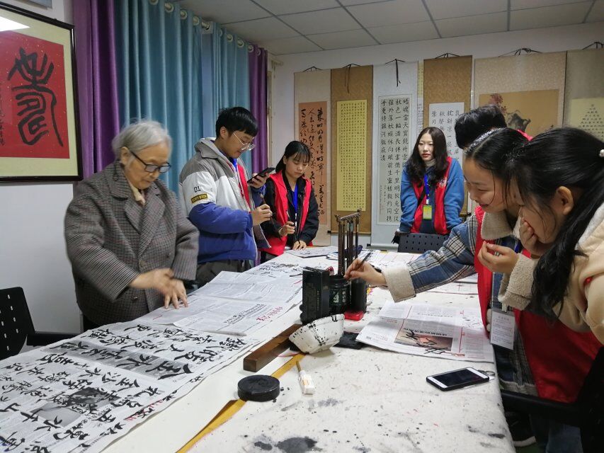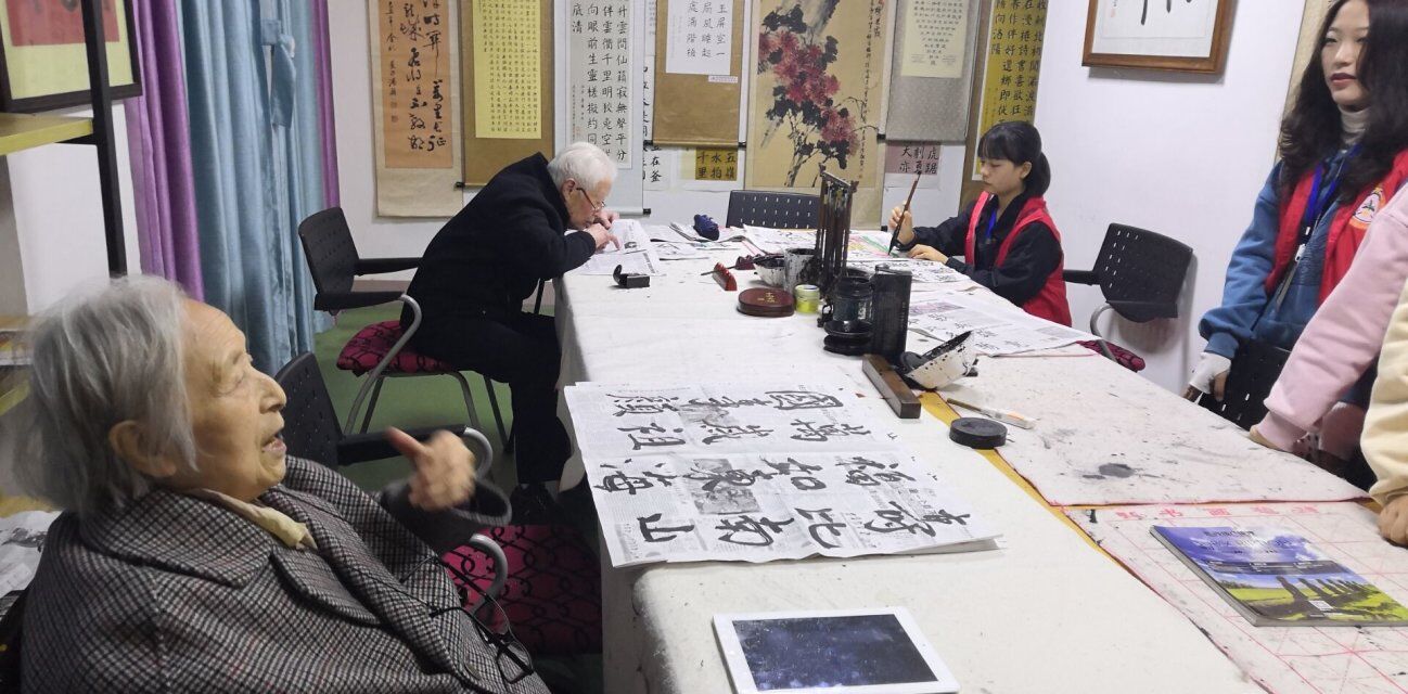 下午3点,志愿者们准时到达福利院。在确认各自的工作任务后,志愿者分别前往养护区1楼和3楼开展志愿活动。随后志愿者们积极与老人进行互动,陪老人聊天、和老人一起练习书法等。交谈中志愿者对老一辈所处的时代有了进一步的了解,为自己处在高速发展的新中国而感到骄傲与自豪,同时十分敬佩前辈们学无止境的生活态度,更加坚定了自身作为新时代青年的责任与义务。