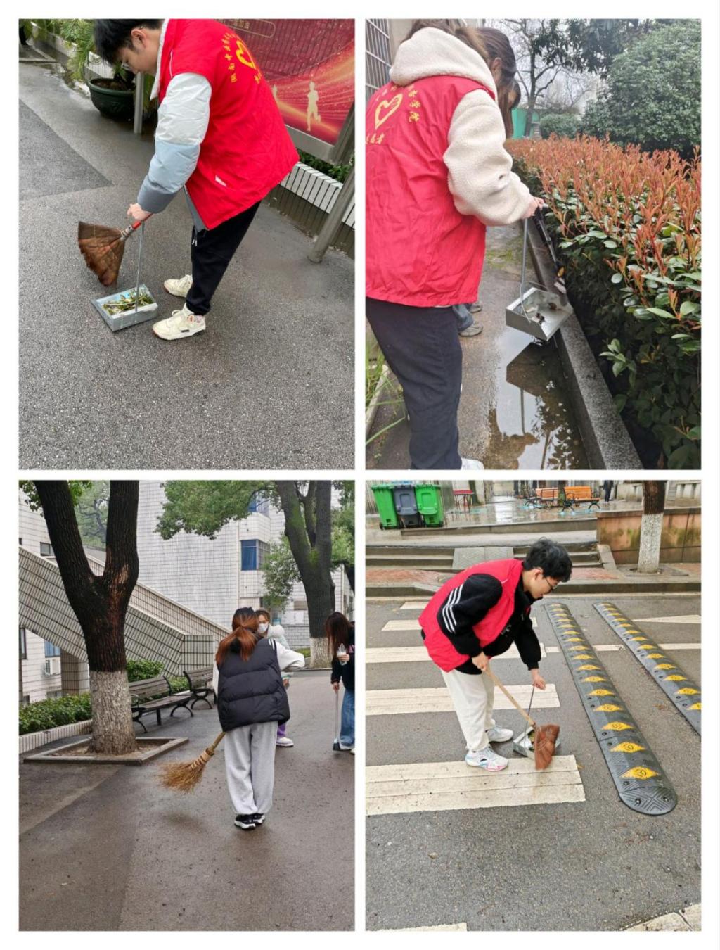 本次活动共组织65名学生志愿者自带扫帚等工具分别在宿舍、操场、林荫道、食堂等地方清扫校园垃圾、绿化植被。志愿者们齐心协力,形成了一道亮丽的风景线,充分发扬了不怕脏、不怕累的精神,用自己的实际行动诠释了雷锋精神的真正含义,同时也让大学生志愿服务这张靓丽的名片更为闪耀