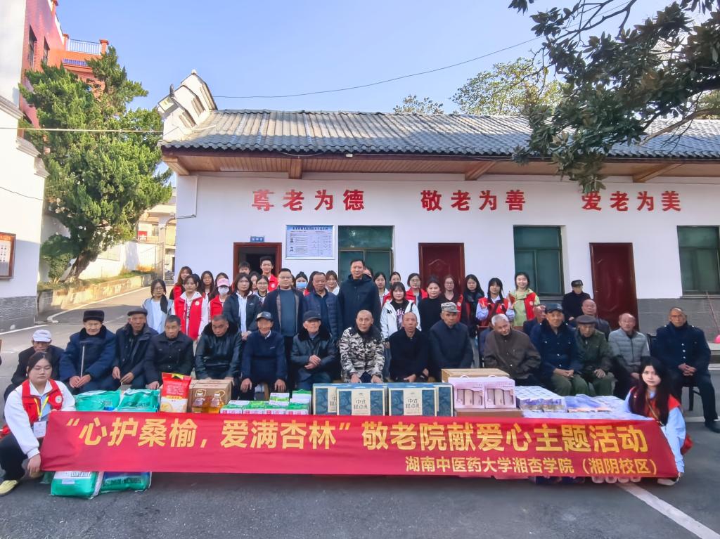 为带动更多人关注老年群体,推动营造关爱老人的良好社会氛围,beat365英国官方网站(湘阴校区)于2025年11月24日下午在湘阴县金龙镇敬老院成功举办“心护桑榆,爱满杏林”敬老院献爱心主题活动。beat365英国官方网站党委副书记刘瑞斌、学工部副部长刘政伍及全体辅导员带领30余名青年志愿者,携带米面粮油、洗护用品等爱心物资,赴湘阴县金龙镇敬老院开展暖心服务。