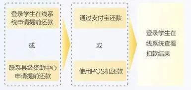 贷款学生可以到县级资助中心或登录学生在线服务系统,申请一次性还清一份或多份《借款合同》尚未清偿的所有助学贷款本金及相应利息;也可以申请提前偿还部分本金(必须为人民币500元以上、且为100元的整数倍数的金额)及相应利息。